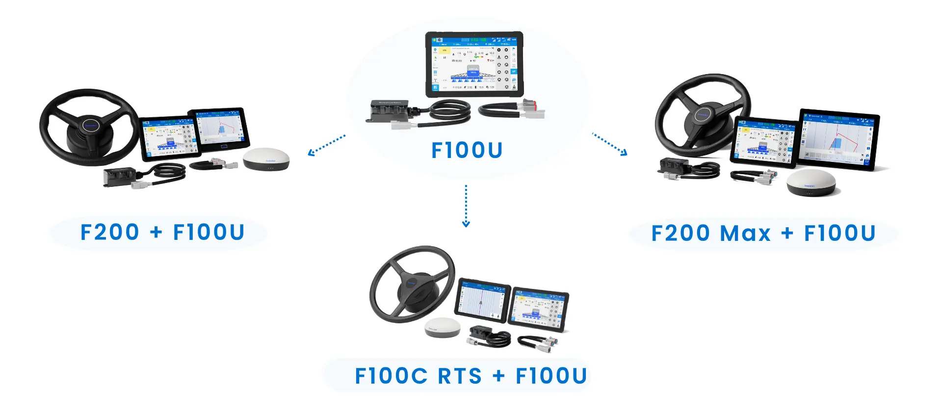 The F100U works with a wide range of ISOBUS-compatible implements, including planters, sprayers, and harvesters, regardless of brand or age, offering effortless integration and reliable field performance.