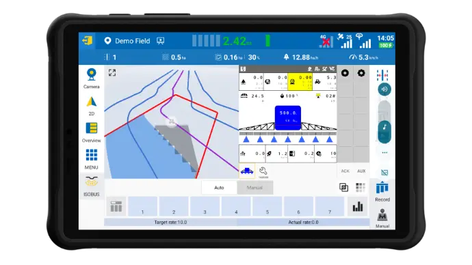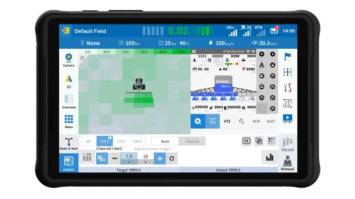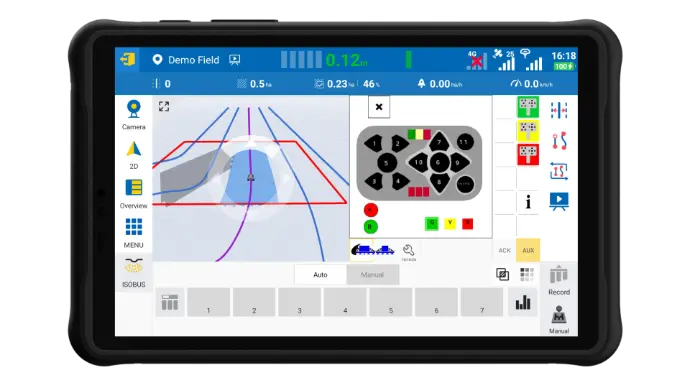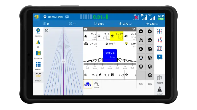- Cable-free autosteering system enabling flexible and fast installation, ensuring ±2.5 cm accuracy.