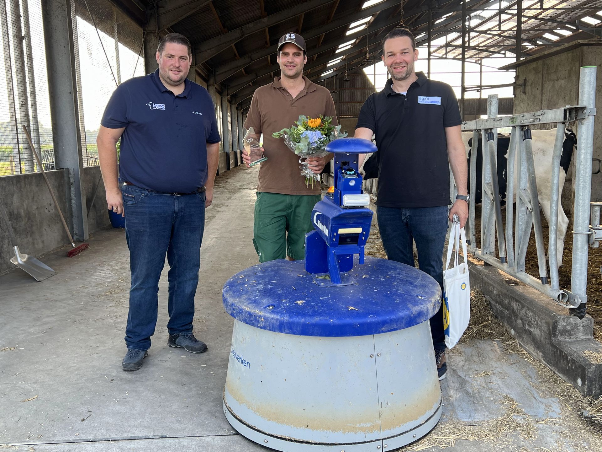 In August 2025, as the first hints of autumn chill touched the air in Northern Germany, the Tremöhlen family farm in Kamp-Lintfort was filled with the warmth of celebration. It was here that Sveaverken’s 100th Nimbo Feed Pusher robot officially went into operation. Our local partner agxit GmbH & Co. KG, dealer HFS Stalltechnik GmbH, and the dairy farmer Lars Tremöhlen gathered to witness this historic moment. There was no grand stage, only the rhythmic sound of cows ruminating and the quiet hum of the robot at work, creating a perfect snapshot of modern, harmonious animal husbandry.