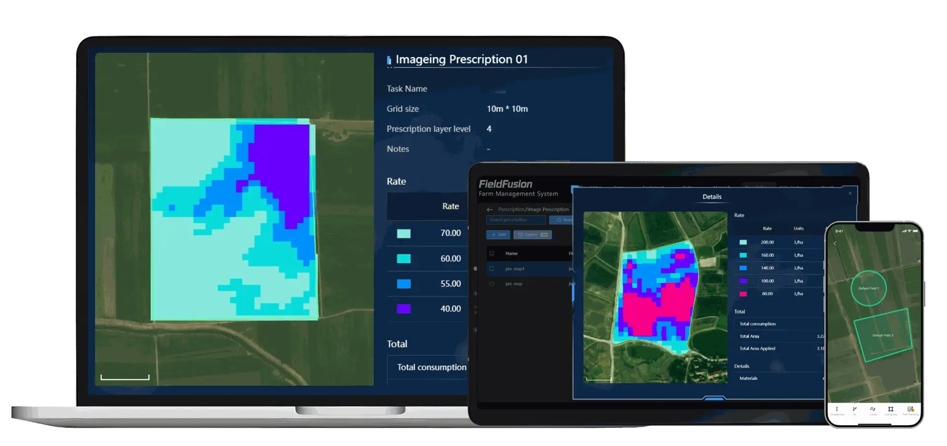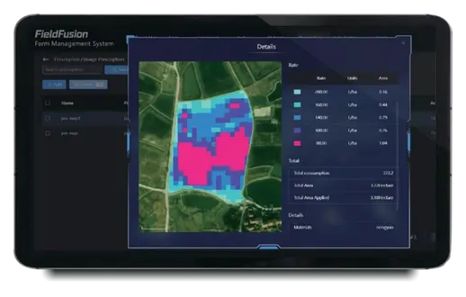 FieldFusion’s Prescription Map collects data from external soil sensors and machinery during planting, spraying, and tilling.
